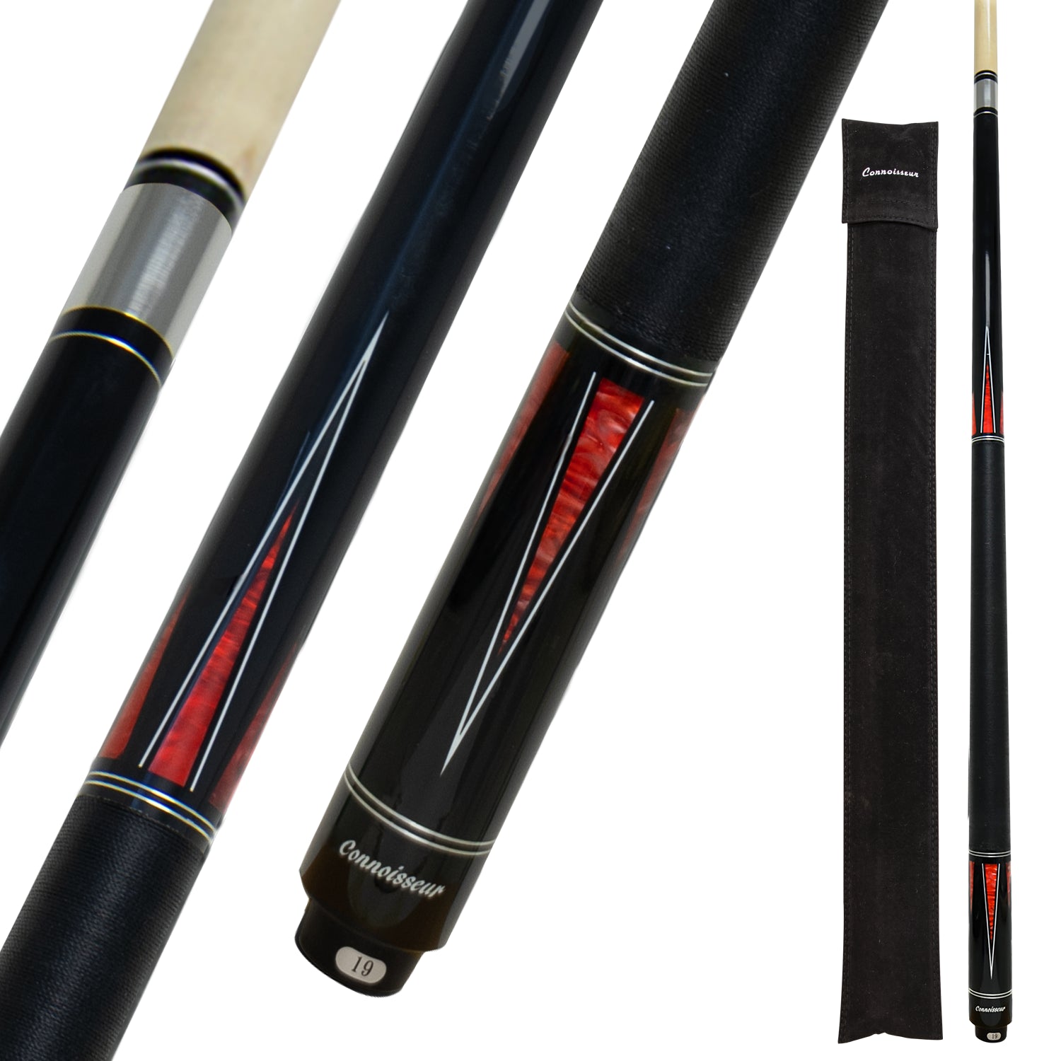 BAGUETTE DE BILLARD CONNOISSEUR NOIR/ROUGE GRIP LIN 12.5MM 19OZ